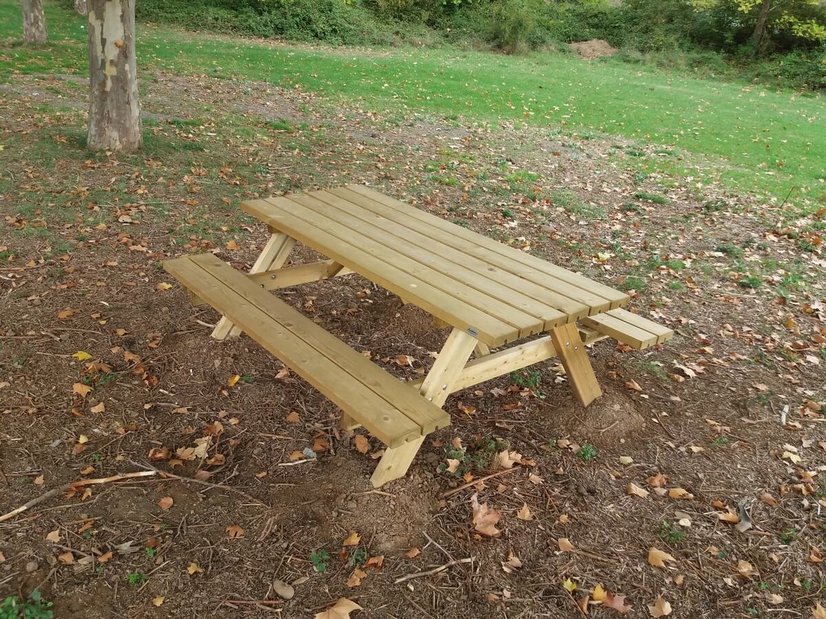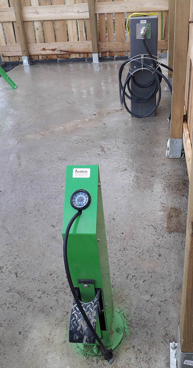 Instalación de mesas picnic, fuente de agua, aparcabiciletas, así como un sistema de limpia bicicletas.