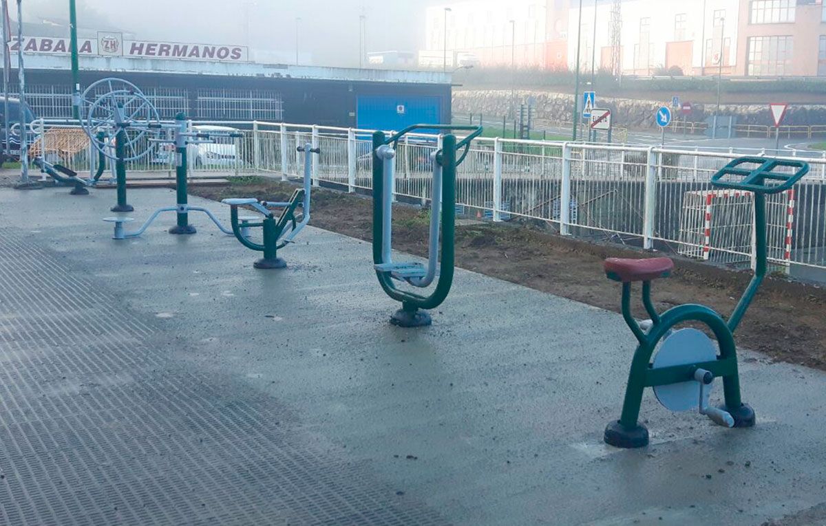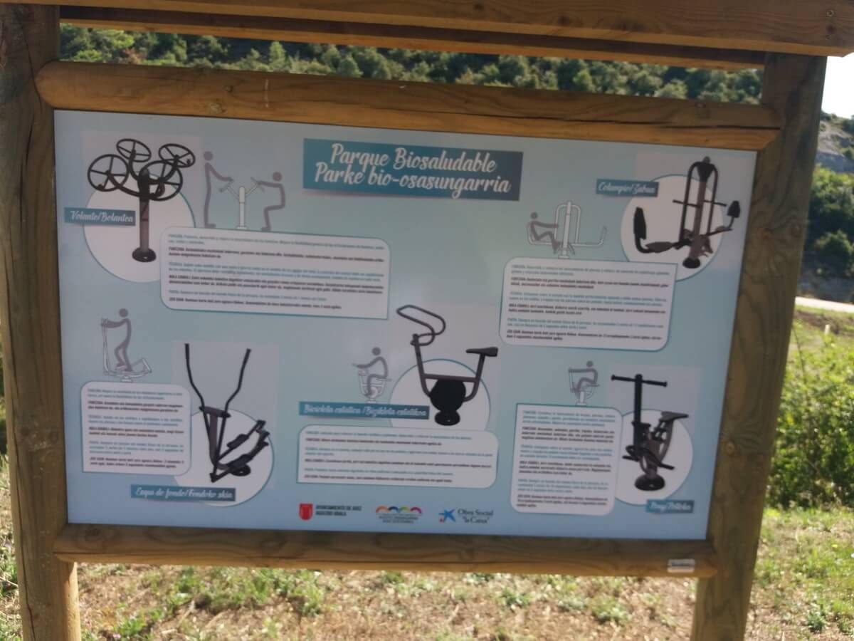 Parke osasungarriak: hainbat gimnasia-ekipamendu eta teilatutxoa duen informazio-kartela jarri dira.